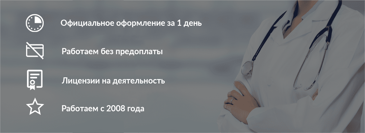 - главный слоган нашей компании – недорого и качественно. Вся медицинская документация на 100 % соответствует общероссийским стандартам качества, и не вызовет вопросов на работе или в учебном заведении.